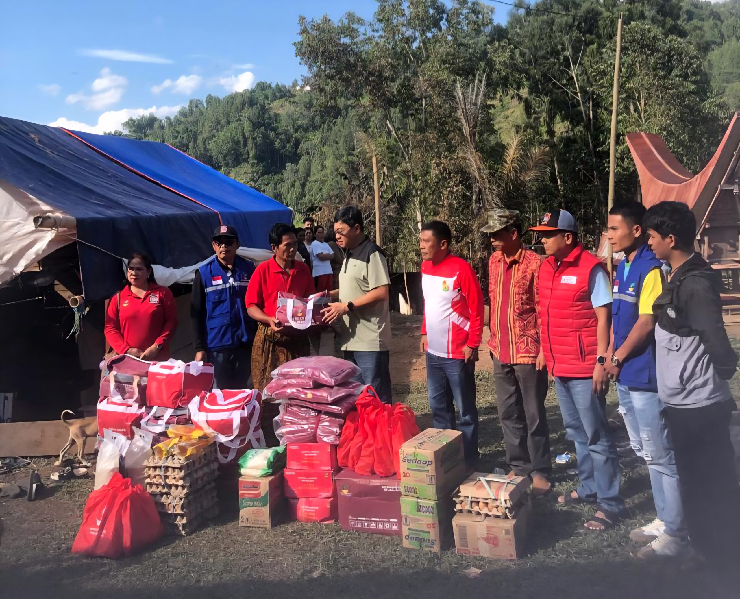 Penyerahan bantuan tersebut sebagai bentuk tanggap darurat, melalui PBD Toraja Utara mendirikan tenda pengungsi agar warga terdampak memiliki tempat berlindung sementara.