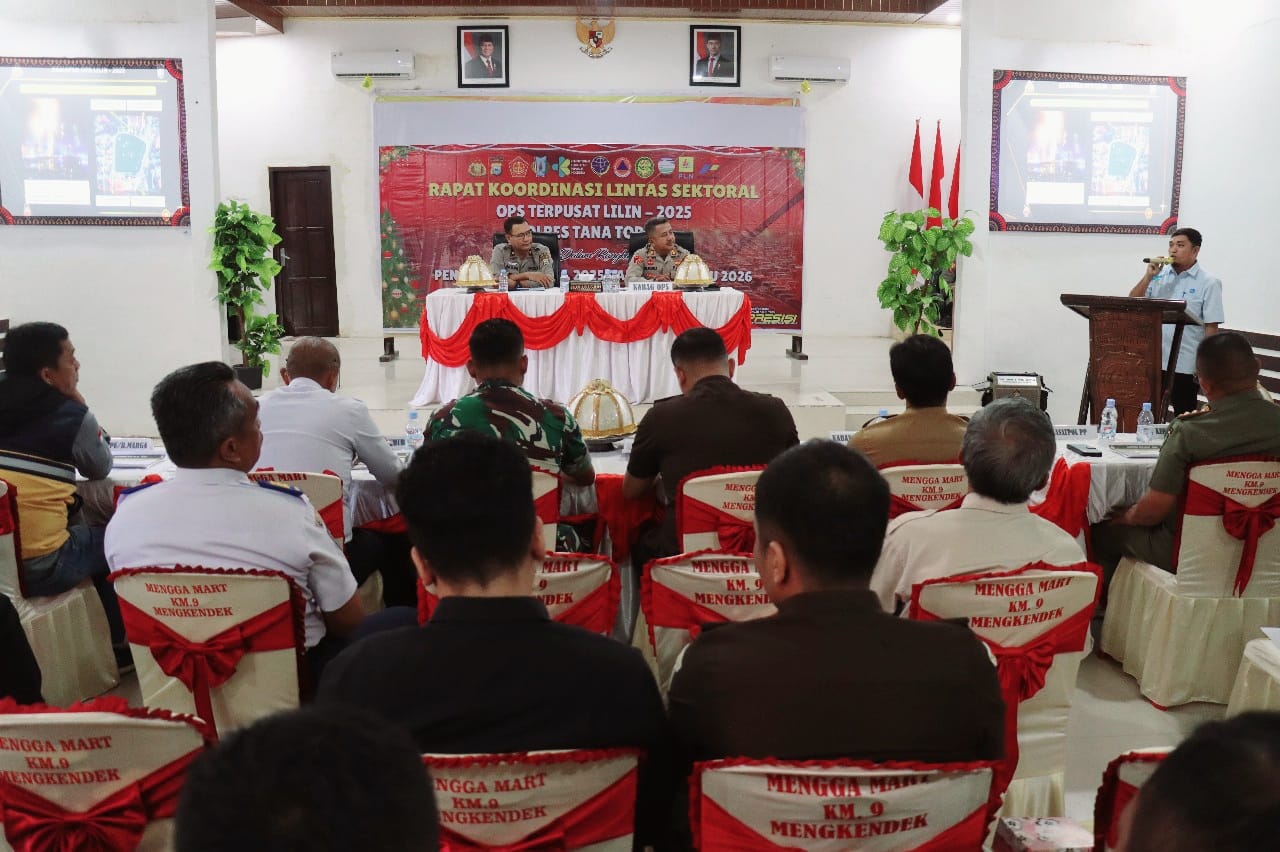 KATA-KITA, TANA TORAJA – Kepolisian Resor (Polres) Tana Toraja menggelar Rapat Koordinasi (Rakor) Lintas Sektoral dalam rangka Operasi Lilin 2025 sebagai bentuk kesiapan pengamanan Natal 2025 dan Tahun Baru 2026 di wilayah Kabupaten Tana Toraja.