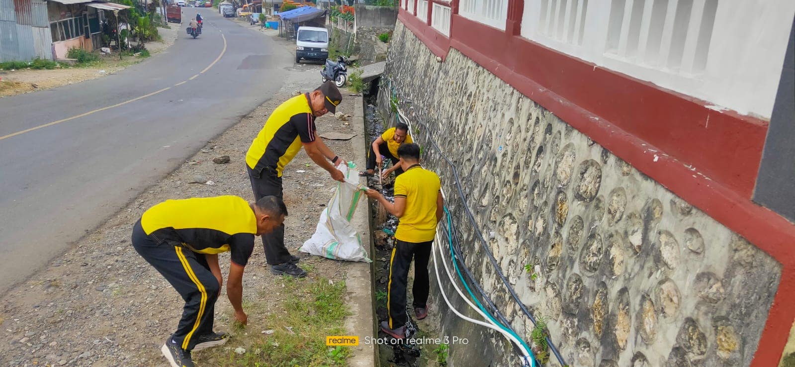 Kegiatan yang dimulai sekitar pukul 08.00 Wita tersebut menyasar pembersihan sampah dan penataan lingkungan di area fasilitas umum, khususnya di sekitar rumah ibadah dan kantor pelayanan masyarakat.
