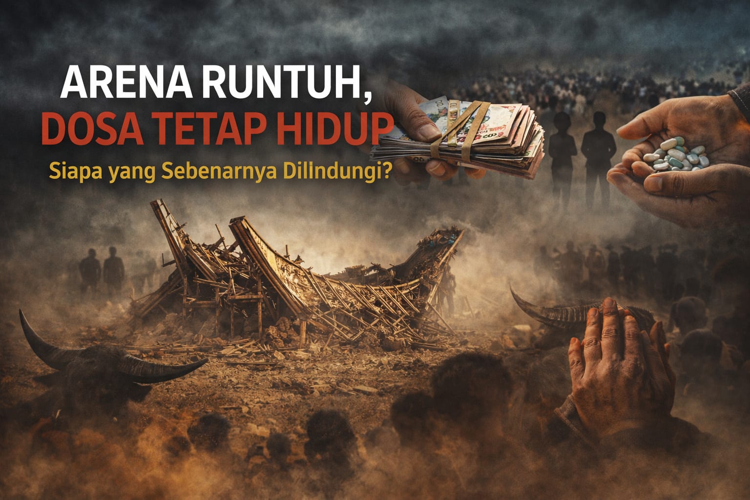 KATA-KITA.ID |TANA TORAJA – OPINI Oleh Gibion Lomo, Runtuhnya arena bukan sekadar peristiwa fisik. Ia adalah simbol. Simbol dari sesuatu yang selama ini dibiarkan tumbuh, dipelihara, bahkan dibela atas nama tradisi.