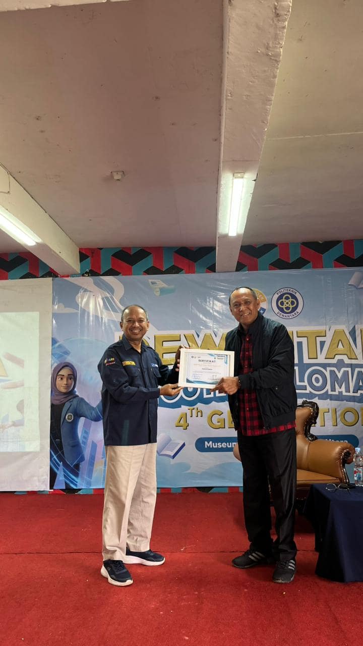 Di akhir kegiatan, Direktur Politeknik Dewantara, Dr. Suaedi, M.Si., secara simbolis menyerahkan sertifikat kepada pemateri sebagai bentuk apresiasi. Kegiatan ditutup dengan sesi foto bersama antara pemateri, pimpinan, dosen, dan peserta DYD Generation 4th 2026.